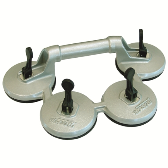 Changeable Ø 120 mm suction pads (213.01) and non-abrasive levers (213.02). Heavy duty design, one piece cast aluminium body, lifting capacity: Approximately 130 kg.