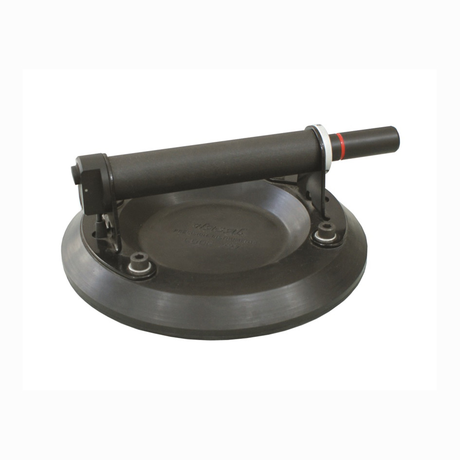 Heavy duty, steel construction, strong design, spring powered pump to evacuate air, red line on the pump to indicate safe suction region, three sealing lips for security and long life. Diameter: Ø 240 mm. Approximate lifting capacity: 130 kg.