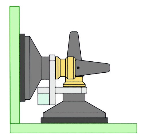 Holds glass panes from inside surfaces, glass panes can be fixed 90º angle and adhered by UV-glue or silicone adhesive easily, Ø60 mm. rubber suction pad holds glass panes firmly until they stick to each other exactly.