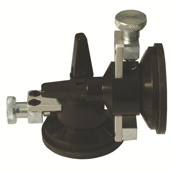 Holds glass panes from inside surfaces, glass panes can be fixed 90º angle and adhered by UV-glue or silicone adhesive easily, Height and position can be adjusted (8mm) by knobs at each arm. Ø60 mm. rubber suction pad holds glass panes firmly until they stick to each other exactly.