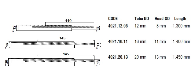 Punties are used for gathering molten glass, adding, streching and holding purposes. Punties are made from heat resistant stainless steel. We offer 9 different standard size punties, special custom sizes and lengths are available. All punties come with wooden protection handle, delrin tap and adjustable stopper.
