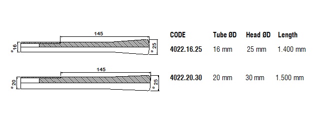 Punties are used for gathering molten glass, adding, streching and holding purposes. Punties are made from heat resistant stainless steel. We offer 9 different standard size punties, special custom sizes and lengths are available. All punties come with wooden protection handle, delrin tap and adjustable stopper.