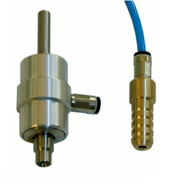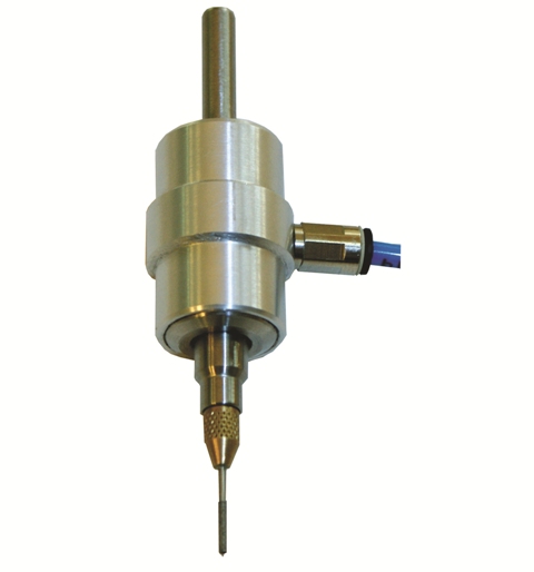 For small diamond drills 1.00-4.00 mm, Ball bearings, Spring forced ejector pin to push and clean hole, 6 mm mandrel shaft, Stainless steel shaft, Aluminium body