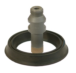Suction base, contains water as a pool for coolant of diamond drill, moisten and twist to apply.