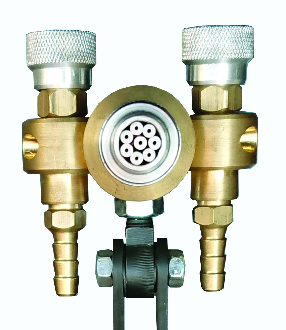 Surface mix, Silent work, High heat and flame performance. 8 gas ports. Works with Propane (LPG) and Oxygen, Oxygen supply can be from tube tanks or appropriate oxygen concetrators. Brass parts, Stainless steel body tube. No welded parts except stainless steel gas gas port tubes. Tubes can be cleaned with a fine needle. Can be disassembled for complete maintenance and cleaning easily. Suggested gas and pressures: Propane: 2 to 6 PSI, Oxygen: 5 to 8 PSI
