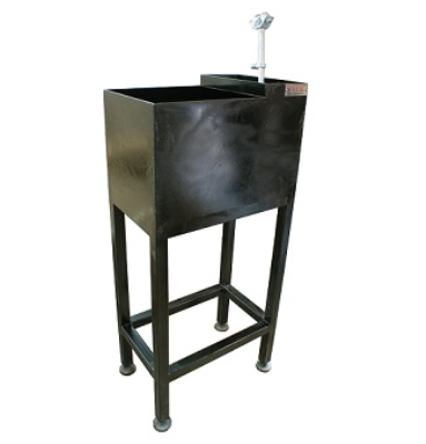 Çelik konstrüksiyon, Şekillendirme sırasında ahşap bloğu soğutmak için su tankı. Suyu boşaltmak ve tankı temizlemek için altta musluk, Üfleme borusunu desteklemek için üstte yüksekliği ayarlanabilir boyunduruk,