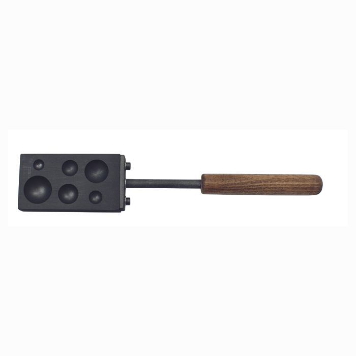 Sert malzeme, İnce işlenmiş 6 yarım küre yuvalı, Ø10, Ø12, Ø15, Ø18, Ø22 ve Ø25mm, Erimiş cam boncukların şekillendirilmesi için.