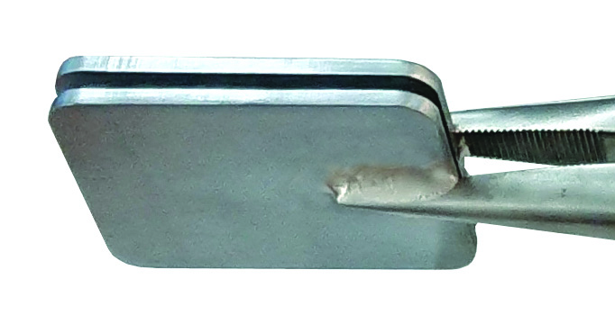 40×32 mm dikdörtgen düz yüzeyli, 3 mm açıklıkta paralel, kalın çelik levhalar.
